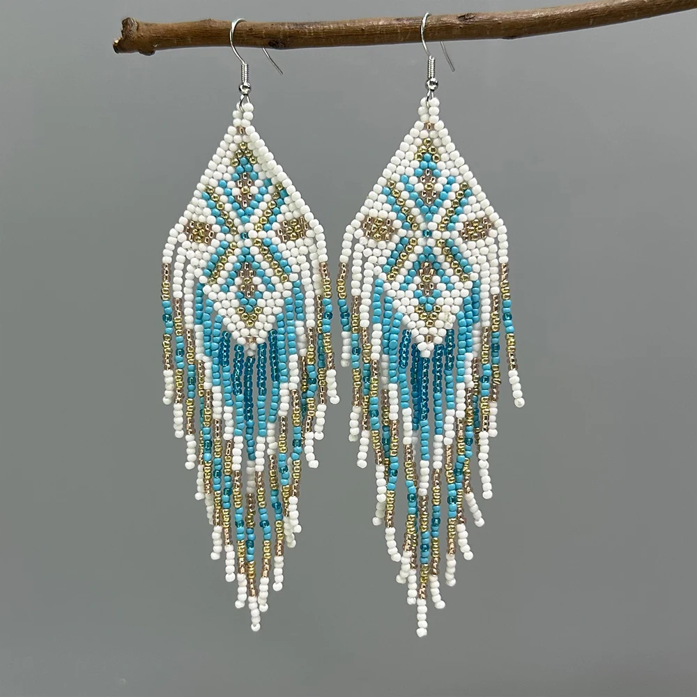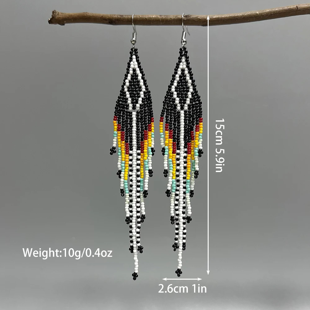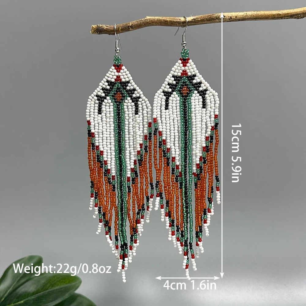 🌸 AHAYA Handmade Long Tassel Beaded Drop Earrings – Bohemian Style